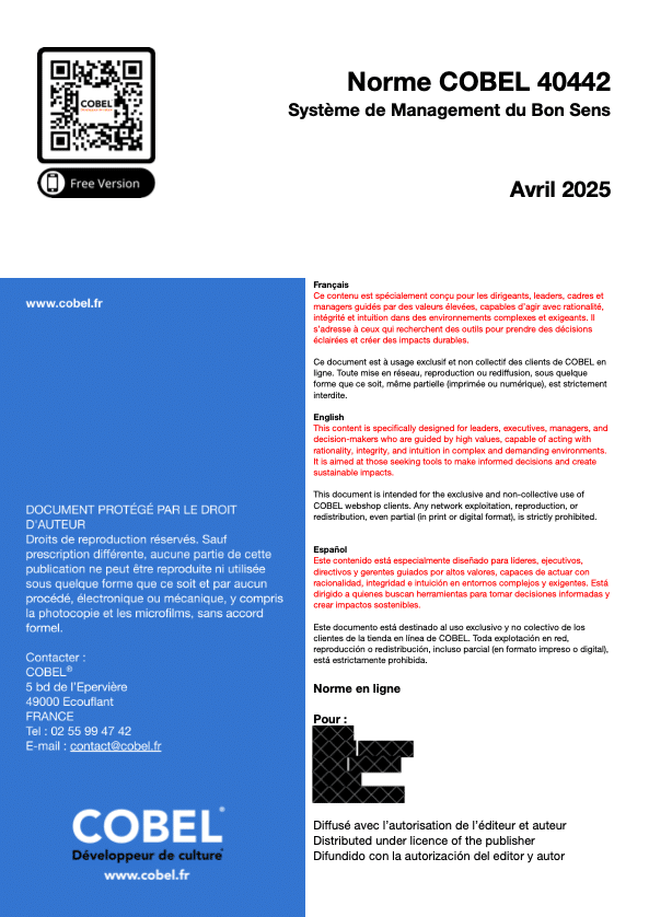 R : Oui, COBEL 40442 a été conçue pour compléter des normes comme ISO 9001, ISO 45001 et ISO 31000, offrant une approche intégrée et cohérente.